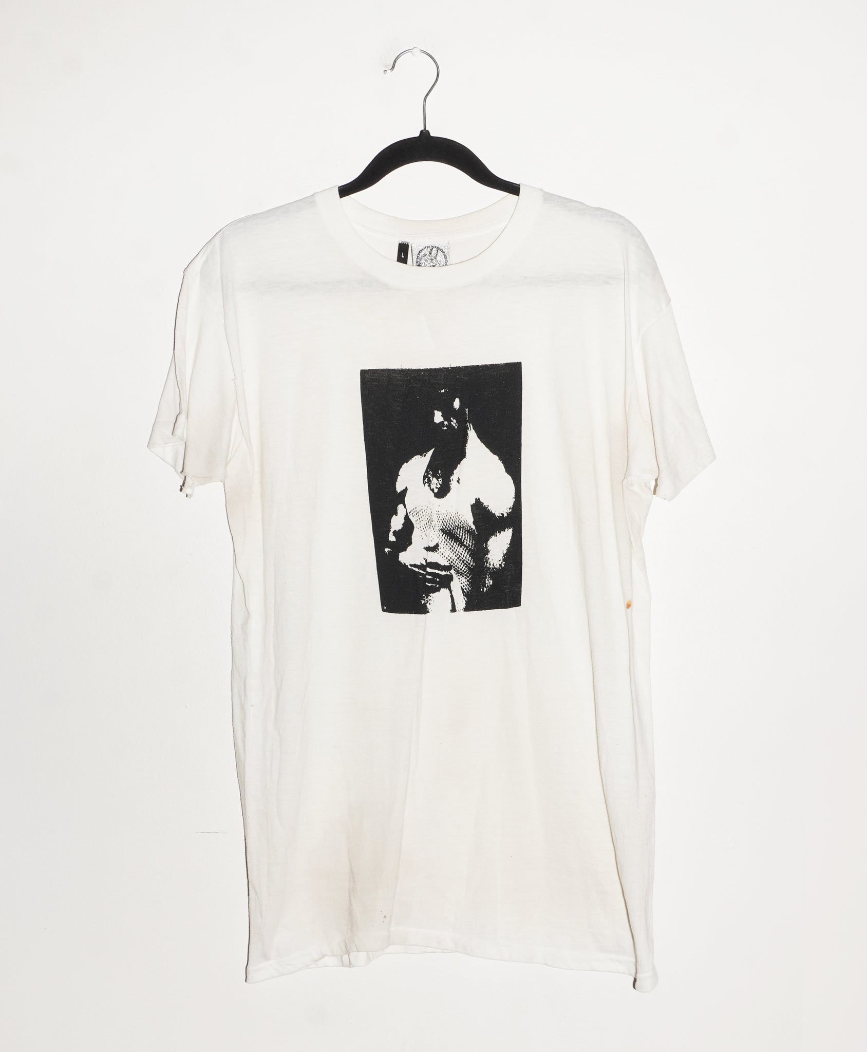 (L) MESHMAN ON WHITE VINTAGE SHREDDED T-SHIRT